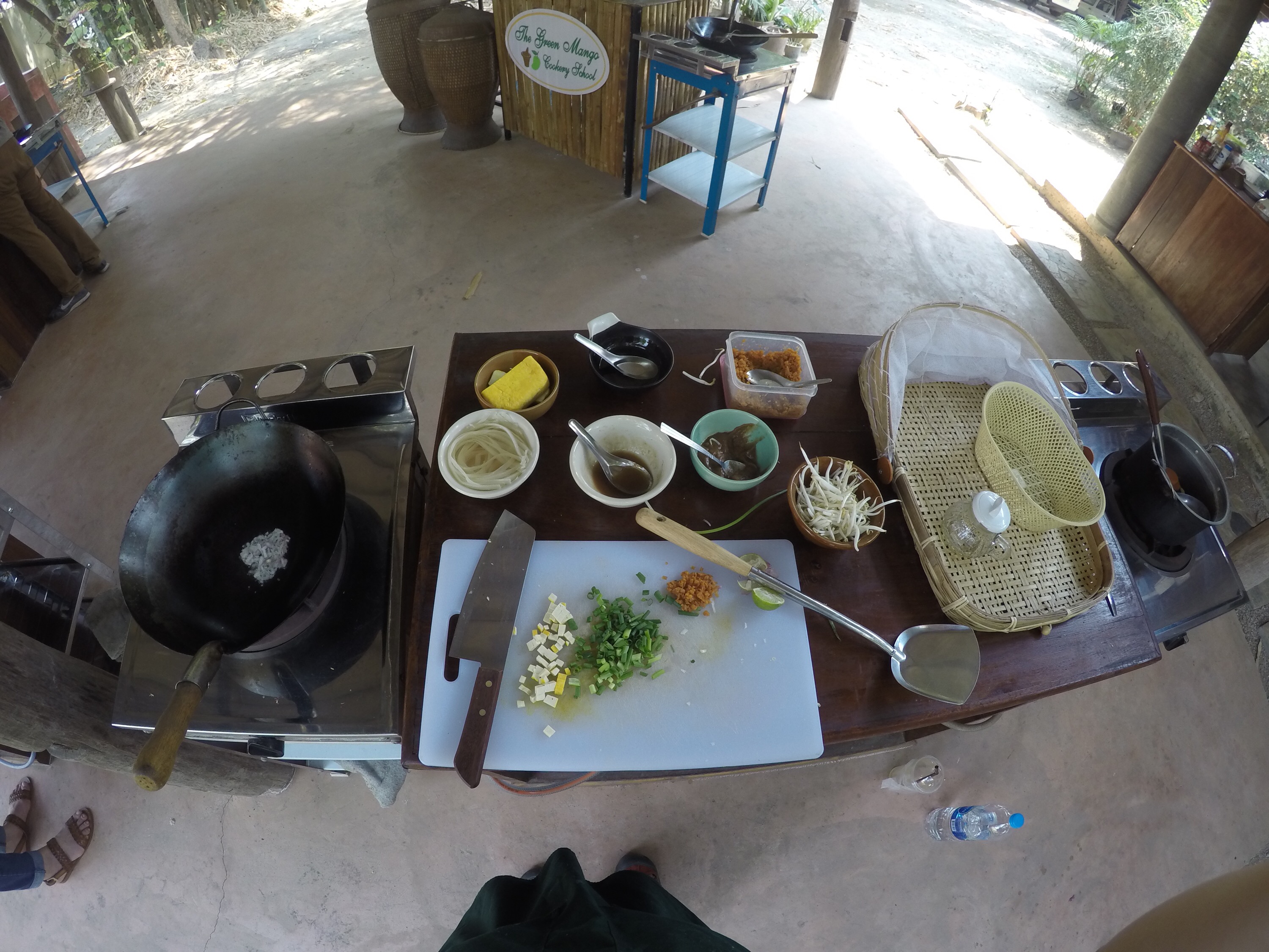 For cooking we could choose from three dishes from each category. I chose papaya salad for appetizer, green curry from curries, tom yam from soups, pad thai from stir-fry and sticky rice with mango for the dessert.