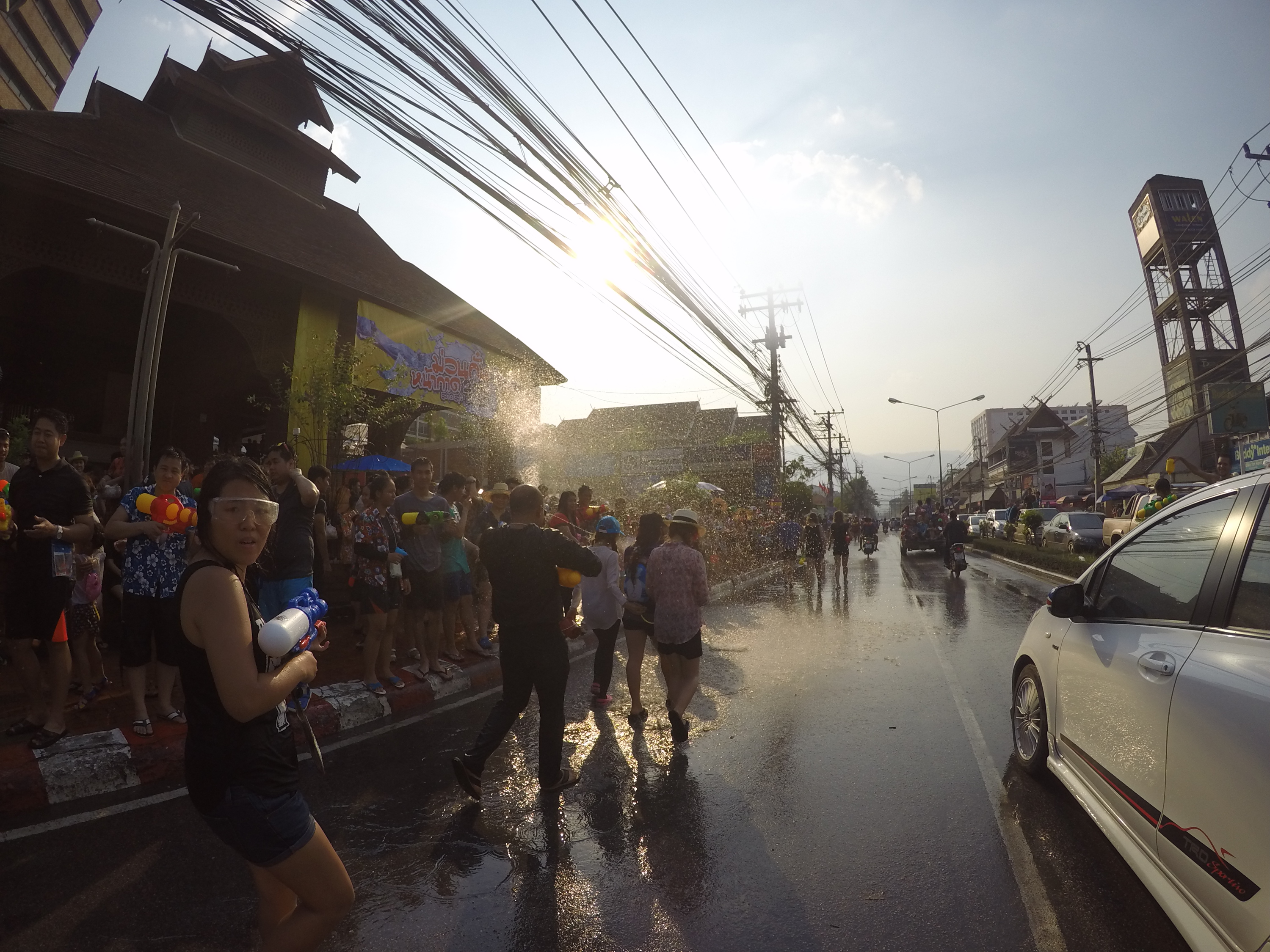 On Tuesday the 12th I was sitting in a restaurant in a busy Chiang Mai street. I was enjoying Cesar salad, aircon and ok wifi and I was getting excited about what was happening outside the restaurant!