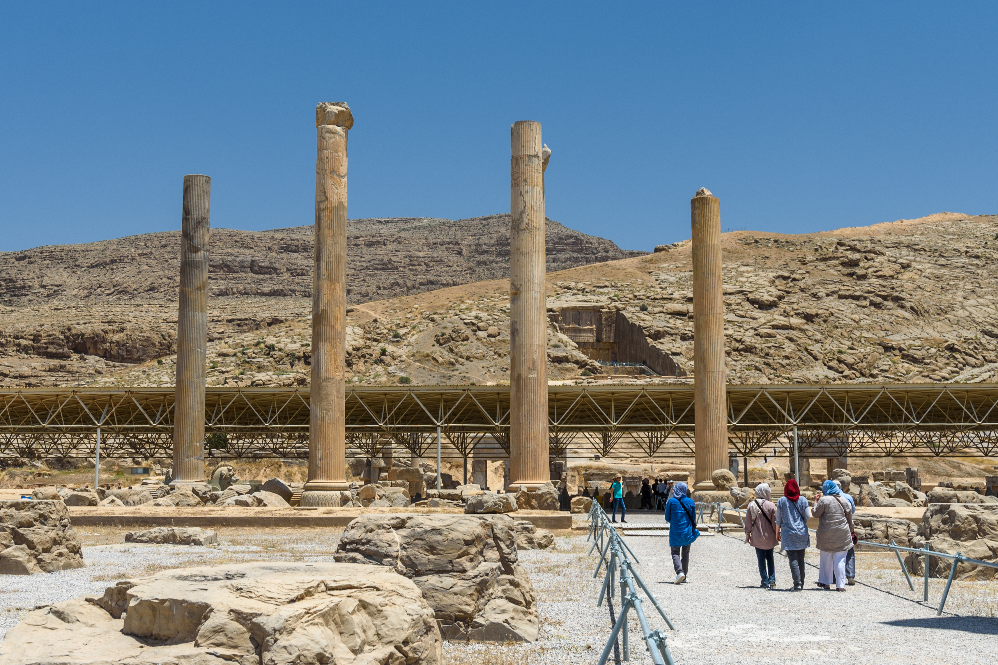Cesta nám trvala asi hodinu z Shirazu. Zaplatili jsme 200k Rielů za vstup a vyšplhali jsme se po schodech do starého Persepolis. Už z dálky to vypadalo monumentálně. Z Persepolis zbylo už jen zříceniny paláce. Po městě které obklopovalo palác dnes už není ani stopa. Palác se skládal z několika částí, místo pro návštěvy, pokladnice, konferenční místnost a osobní palác pro krále. Zříceniny naznačovali velikost bývalého paláce. Všechny zdi byly zdobené vytesanými detailními obrazy Peršanů a jiných národů. Masivní sloupy jsou až 20 metrů vysoké a zdi asi 7 metrů tlusté (!). Když jsme to viděli, vzpomněl jsem si na hlášku z Červeného trpaslíka, “Jak to dokázali postavit? Měli masivní biče, Rimmere!”.