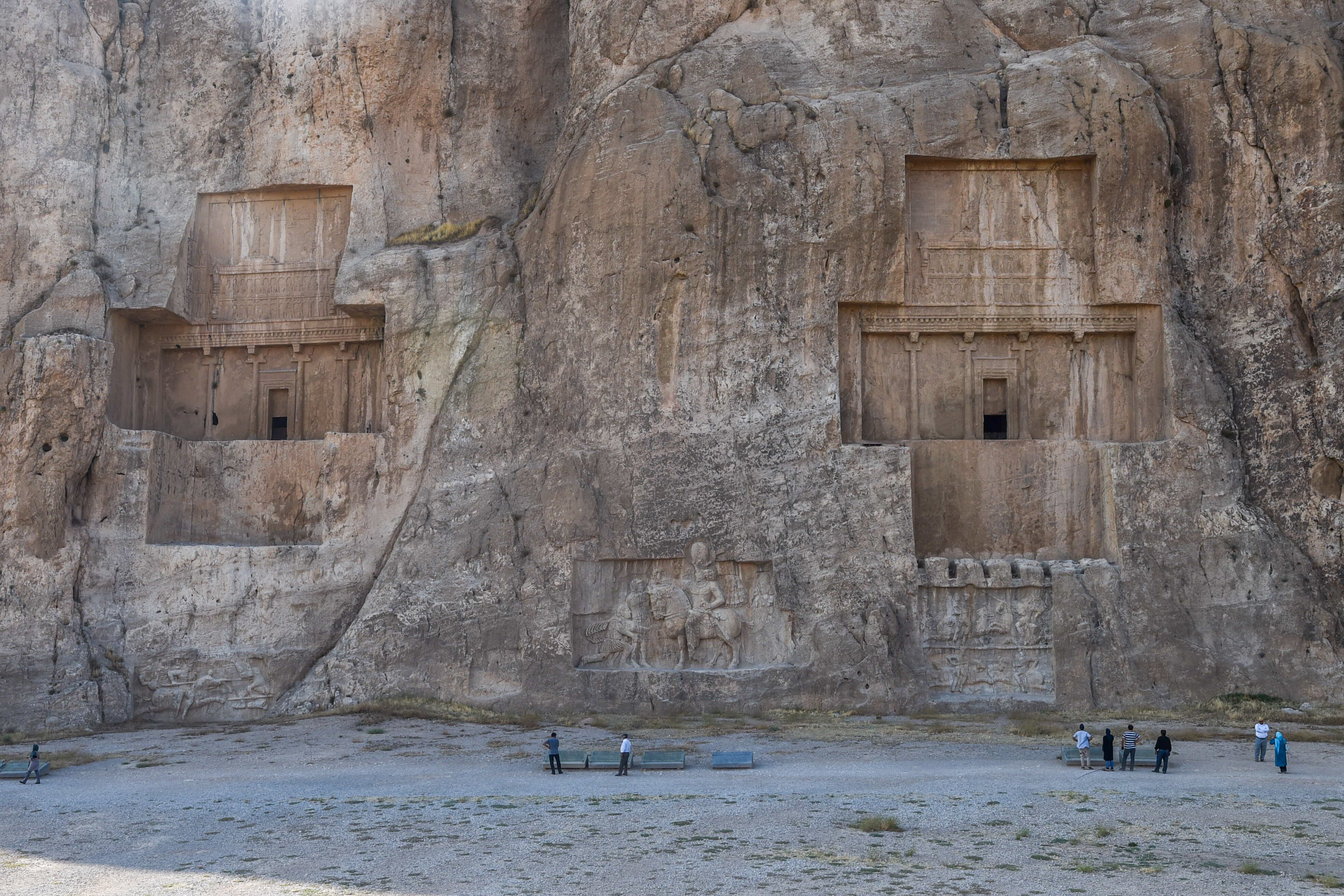 Za palácem byly vytesány do skály obrovské hrobky, které si králové žijící v Persepolis nechali vytesat již za svého života. Je to na kopci za palácem, takže když jsme se tam vyškrábali, museli jsme si udělat selfie.