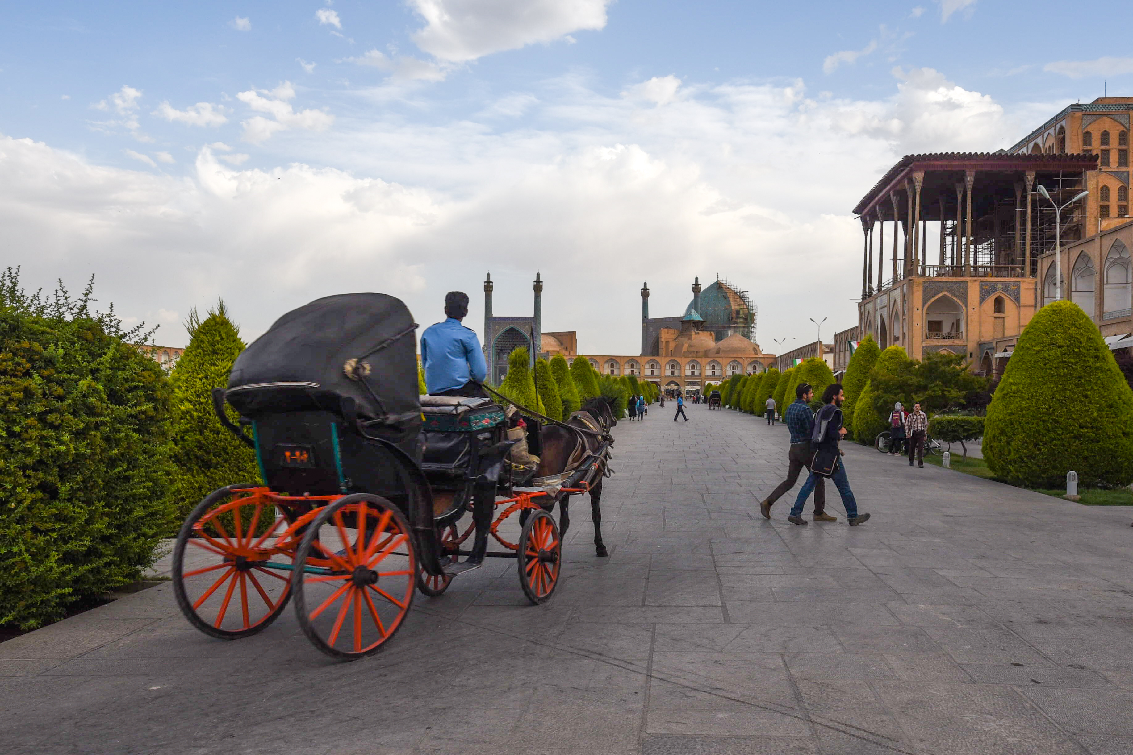 Naqsh-e Jahan (dříve Imam square) je druhé největší náměstí na světě (jen Beijing má větší). Měří 512m na délku a 163m na šířku. Bylo postavené na začátku 17 století kdy se tu hrálo v polo, které vzniklo právě v Persii. Je zapsané na seznamu UNESCO. Během dne je úplně opuštěné, protože se všichni kryjí před horkem a sluncem ale večer to tu žije a koňské spřežení se ani na chvilku nezastaví. Je krásné nejen svou velikostí, parky a fontánou ale i dvěma modře zdobenými mešitami Shah a Lotfollah.