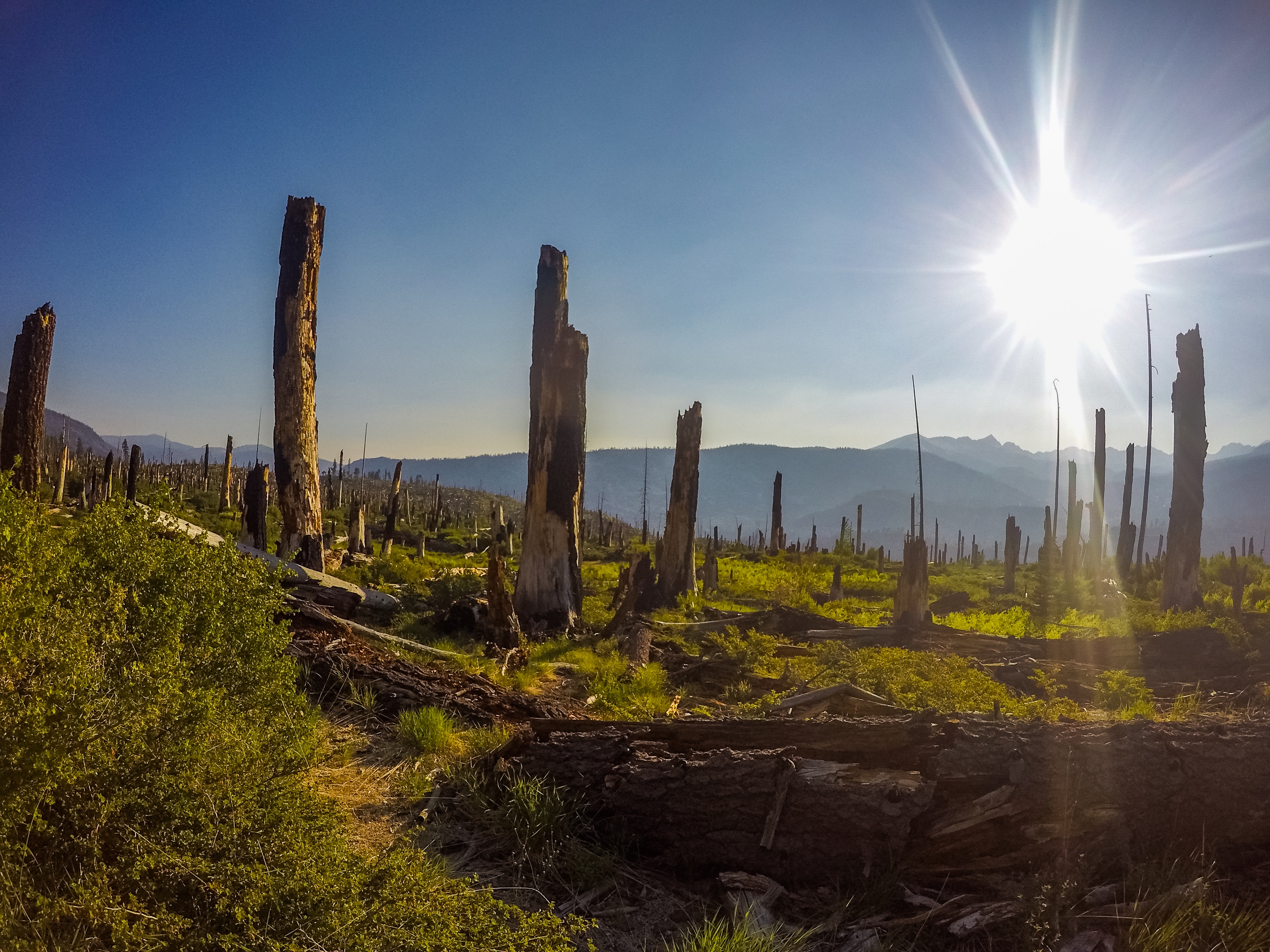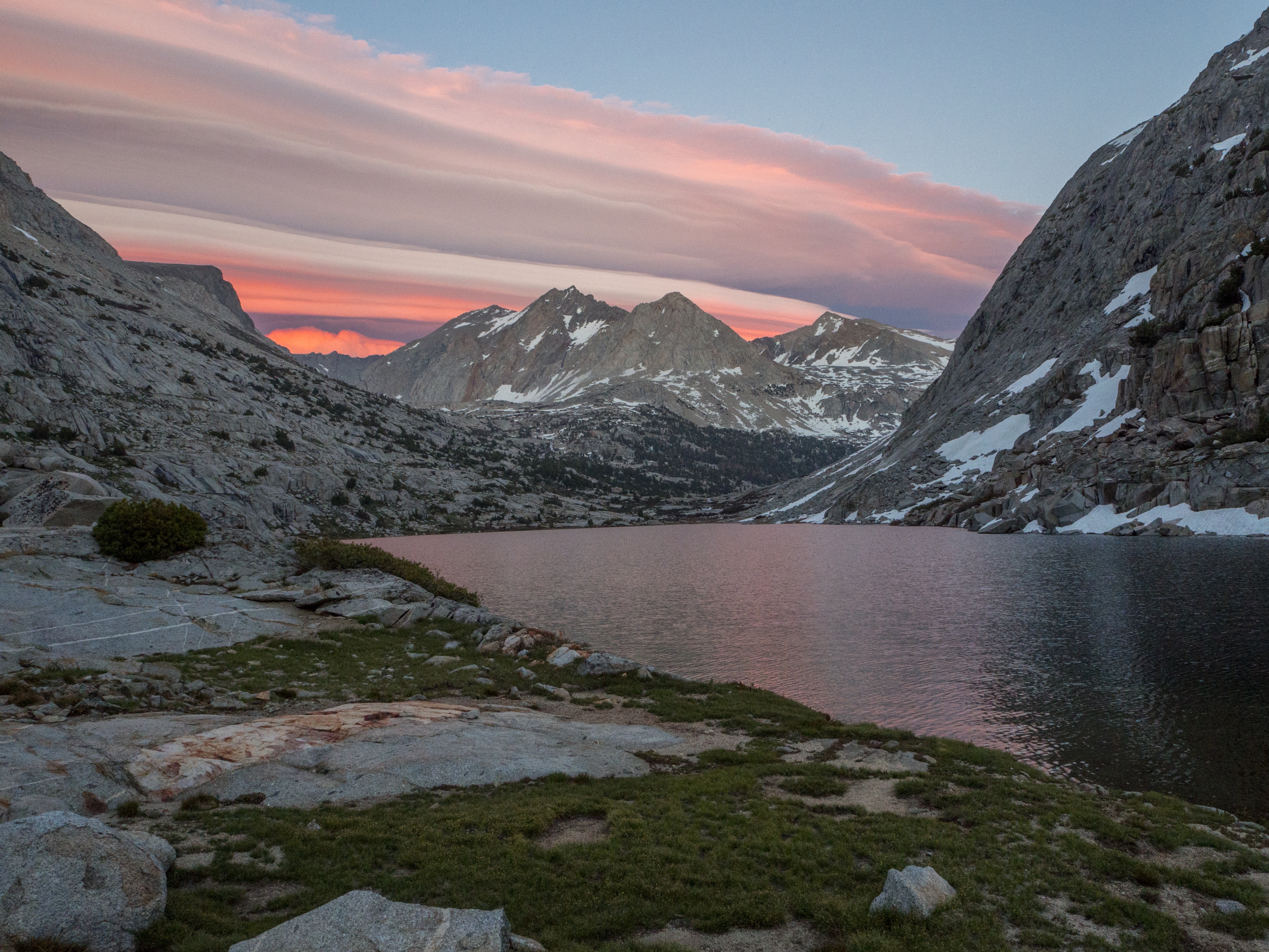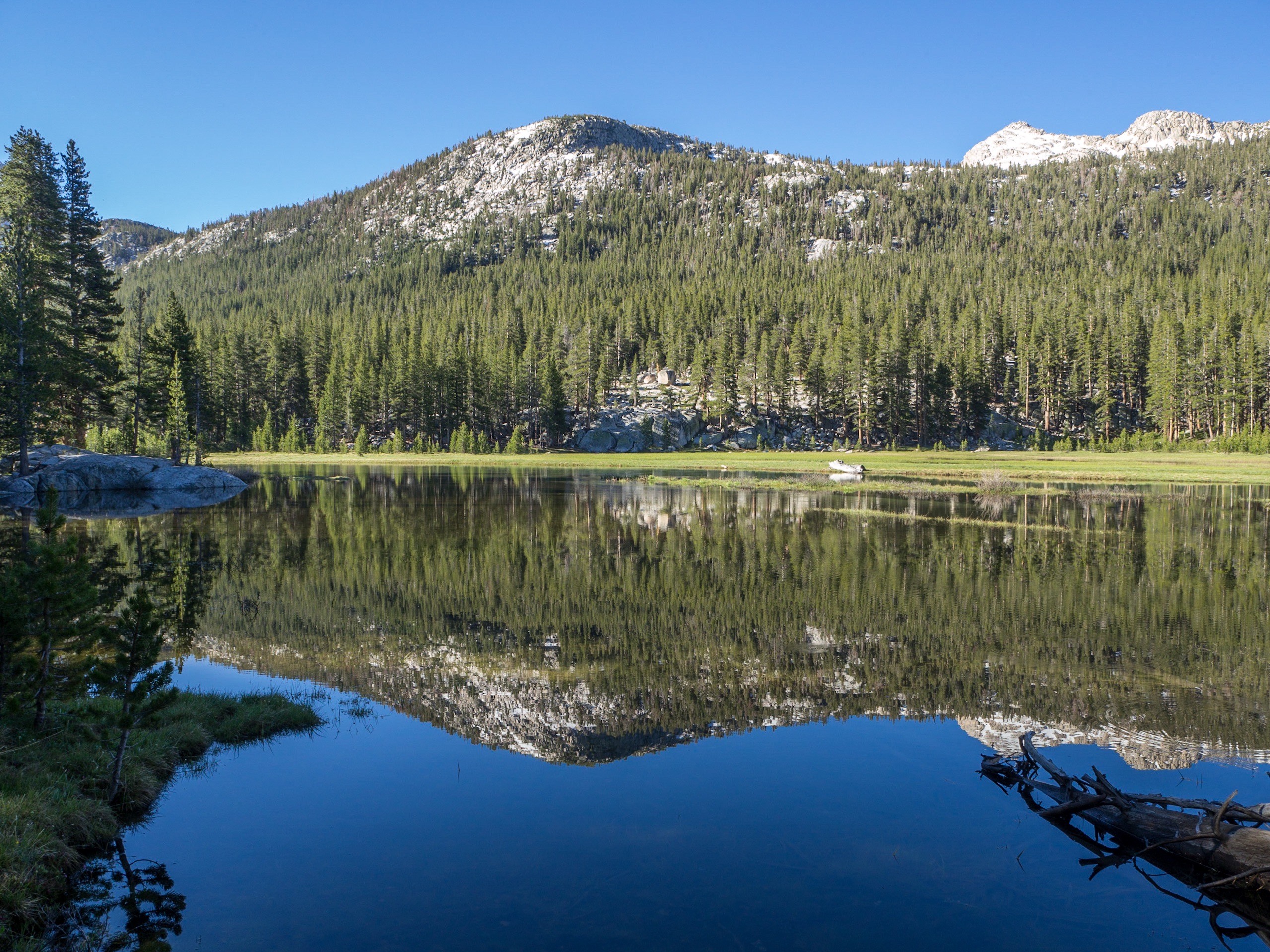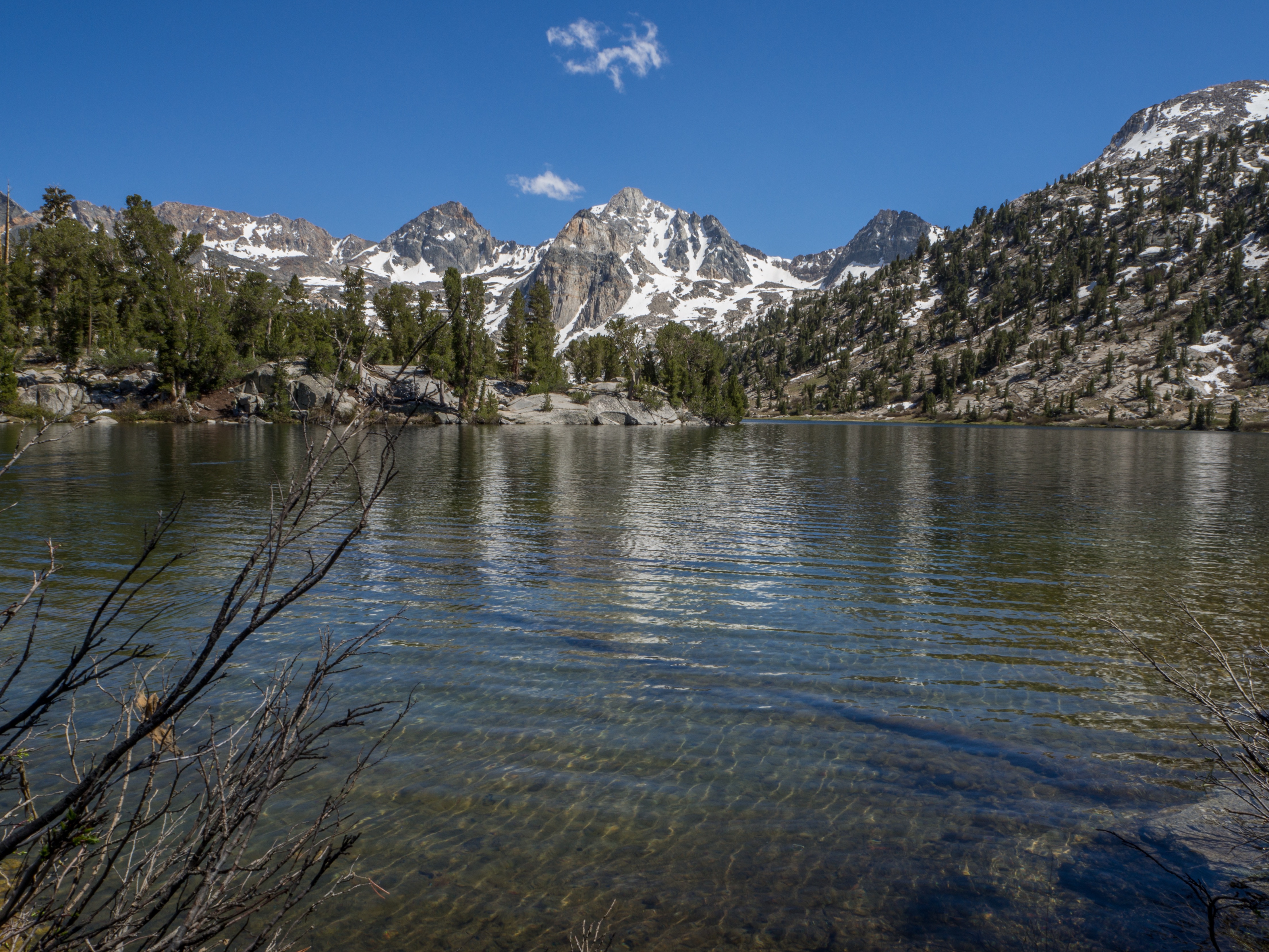 Je to hodně zvláštní den, nikoho nepotkáváme. Většinou se potkáváme se skupinou Američanů, kteří mají podobné tempo, nebo jinými hikery, kteří nás předbíhají nebo JMT hikery, kteří jdou v protisměru. John Muir Trail (JMT) začíná totiž v Yosemitte Valley a končí u Mt. Whitney. Ale dnes jsme nepotkali ani nohu a je to zvláštně nepříjemné, skoro si říkáme, jestli nejdeme špatně.