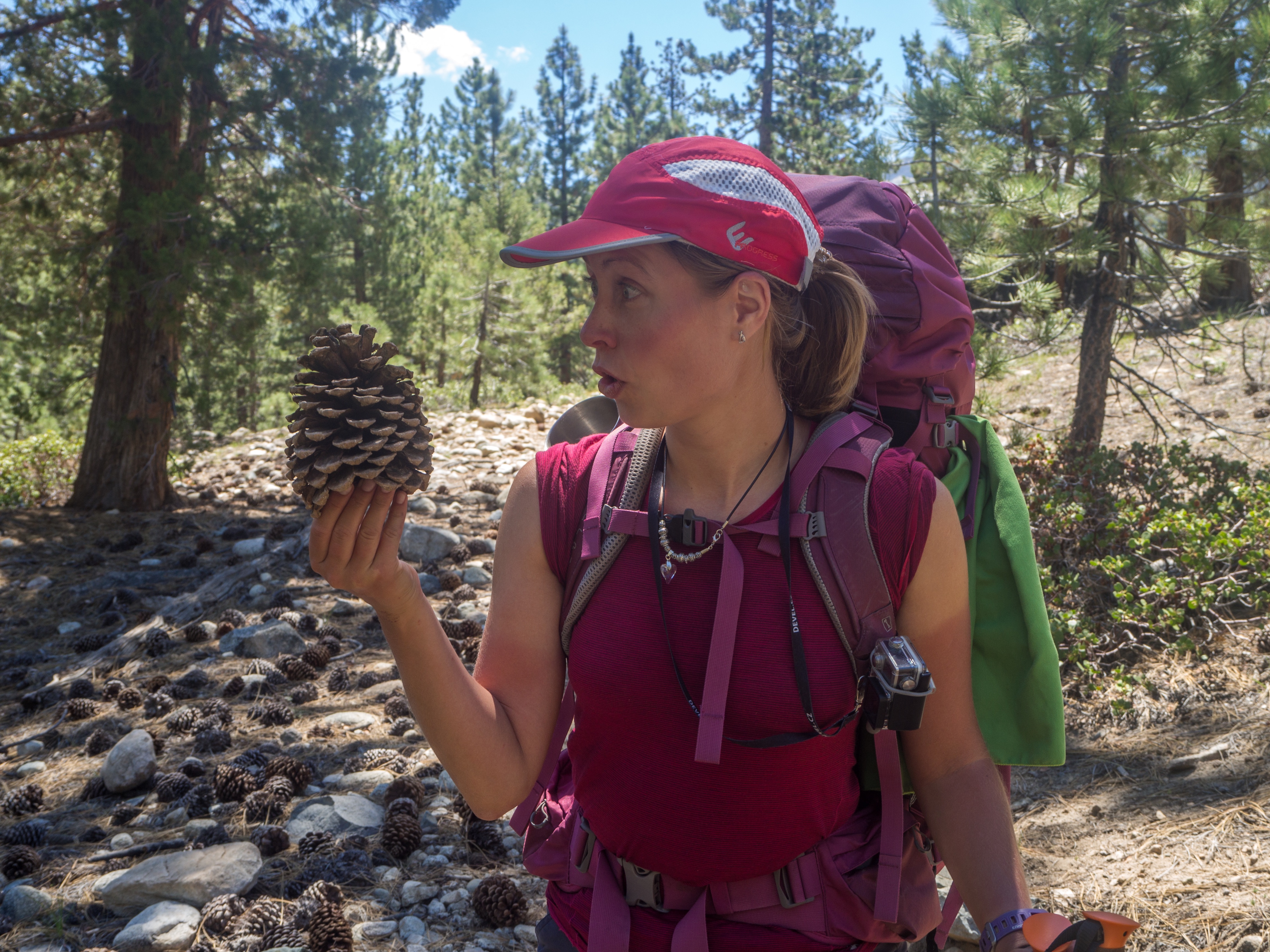 To znamená, že jdou celou trasu od Mexika do Kanady, která má 4 265km. Ani jsme nevytáhli mapu a vyrazili jsme, doufajíc, že na cestu přece určitě narazíme. Po 15 minutách nám dochází, že jsme špatně. Tak mapy asi budou potřeba. Je kolem půl deváté a už je vedro. Cílem na první den je vystoupat Kearsarge pass, což je asi 12km a kilometr převýšení, bez jediného stromu, který by nabízel stín. Už po dvou hodinách si musíme udělat zastávku a ujíst něco ze zásob. Počítáme každý gram, který jsme ujedli. Celou cestu nahoru myslíme na to, kolik toho ještě musíme sníst, aby tíha batohu byla snesitelná. Strider, majitelka hotelu, už byla na cestě zpět z průsmyku. Cesta je nekonečná, zdá se, že to snad nikdy neskončí. Martinovi se nad 3500m začíná motat hlava a špatně se mu dýchá. Procházející davy PCT hikerů nás doslova předbíhají. Většina z nich má touhle dobou v nohách přes 1400km. Kolem 14 hodiny jsme ale konečně na vrcholku! Shodili jsme naše monstrózní batohy a kocháme se nádherným výhledem.
