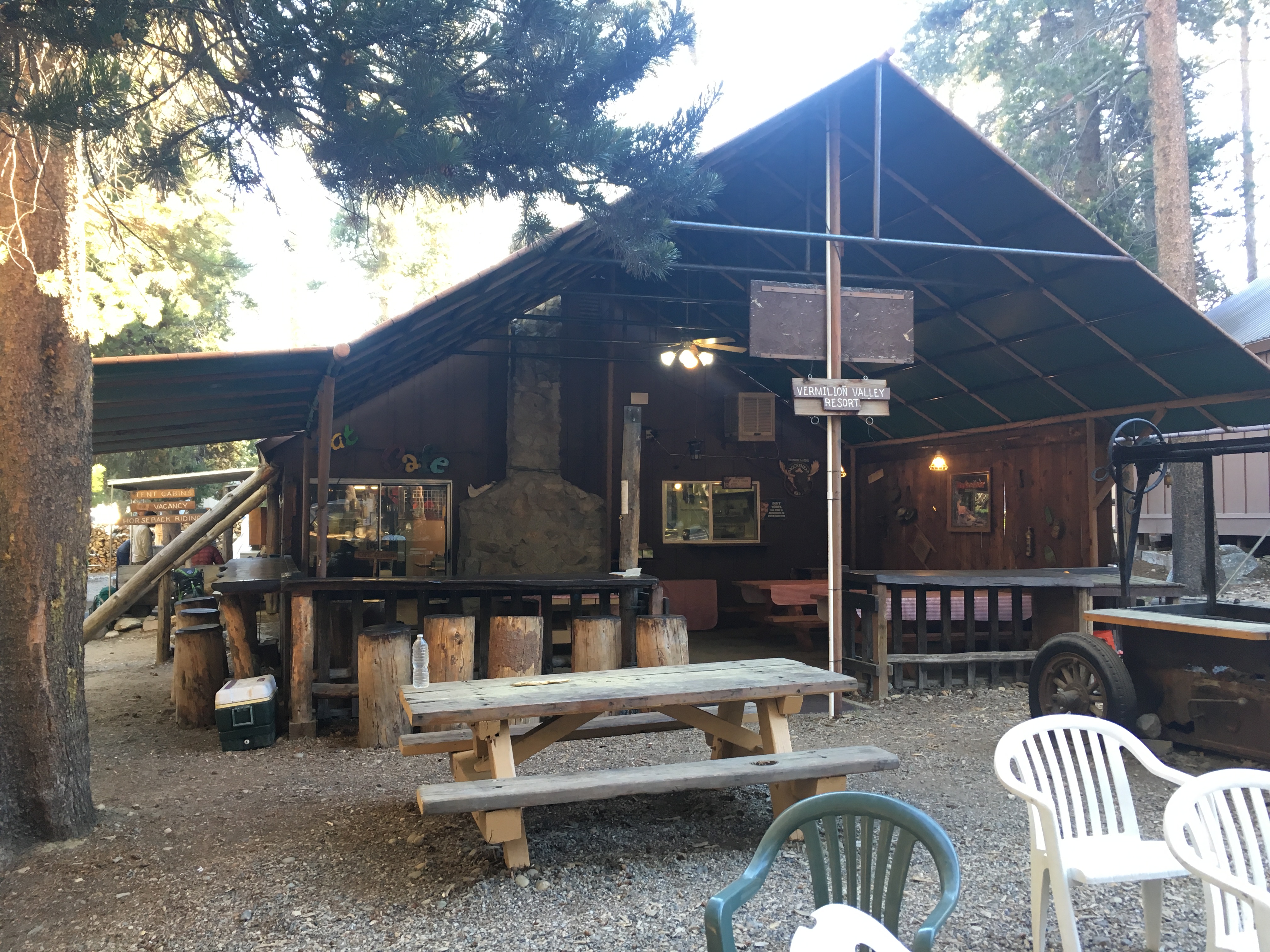 Ráno nás budí až teplo, což je příjemná změna. Většina stanů už je pryč. Máme za cíl udělat nákup na 5 denní cestu do Yosemitte Valley, zahojit můj ret a nechat svaly trochu odpočinout. Při pohledu do krámku si ale uvědomujeme, že VVR na to není vhodné místo. Výběr potravin tam mají méně než malý. Slyšeli jsme, že prodávají jen věci, které si lidé nevyzvednou ze svých zásobovacích balíčků. Podle zmačkaného vzhledu tomu věříme. Kromě toho na většině produktech byla 100-300% přirážka. Tak jsme tu koupili 4 čínské nudle, jedny sušenky a oplalovací krém a rozhodli jsme se, že si zajedeme do Mammoth Lakes, což má být horské městečko se supermarketem. Bohužel tu nemáme ani signál a internet stojí 8USD na hodinu. Martin koupí alespoň hodinu, abychom se ozvalli domů.