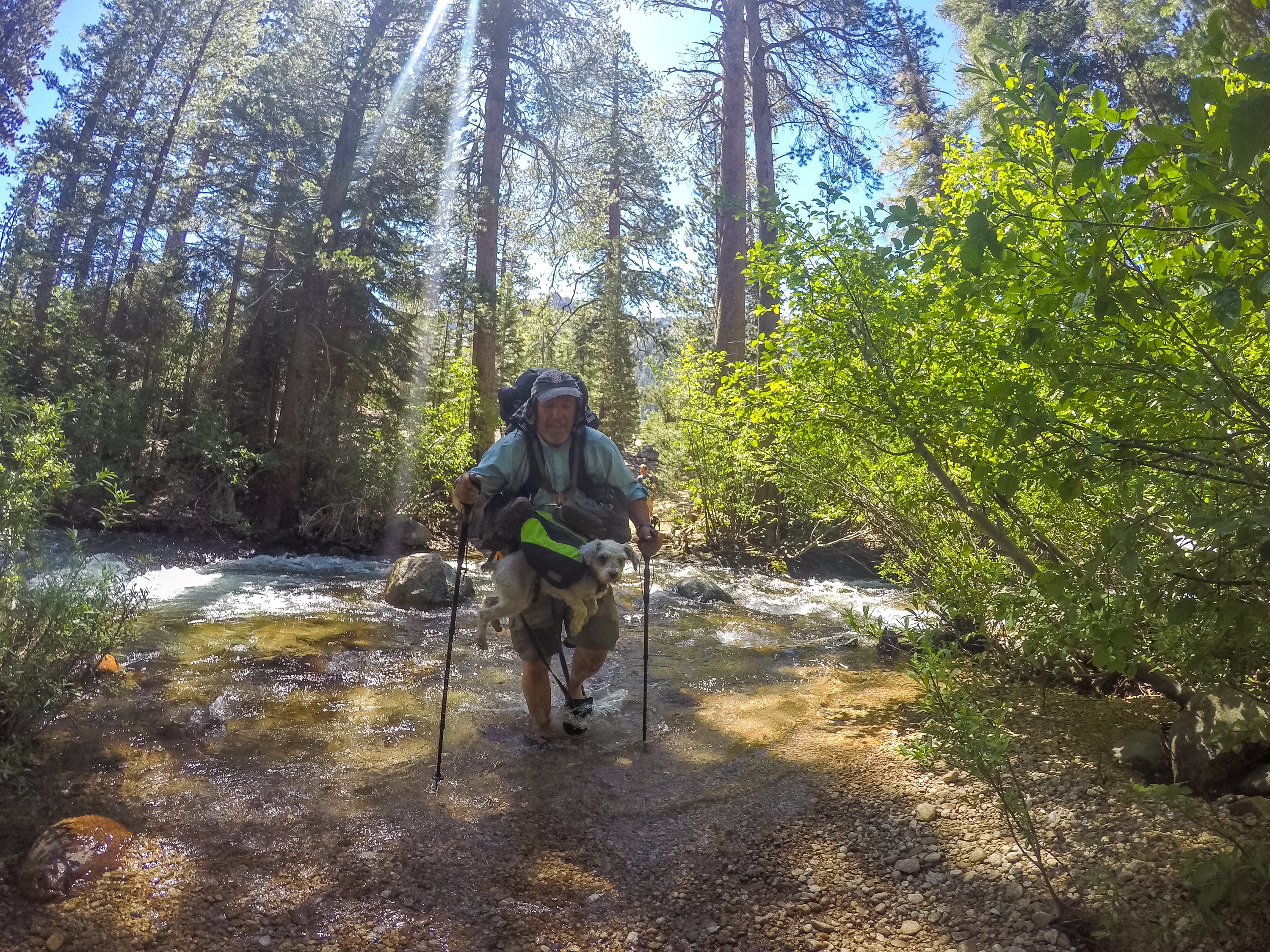 Běžně musíme přecházet říčky a řeky ale zatím jsme nepotkali opravdu vysokou vodu, až do dneška. Dokonce je okolo této řeky alternativní cesta, pro případ, že by byla příliš rozvodněná. Chvíli váháme, zda jít nebo ne, ale vidíme nějaké známé tváře jak jdou vstříc vodě a tak jdeme taky. Boty hodíme za krk a jde se. Voda sahá až po pás, ale nastěstí nemá silný proud. Je jen ledově studená. Pár Irů, kteří s námi přecházeli řeku, říkají, že zítra určitě dorazí do VVR. Rozhodli jsme se, že to zítra stihneme taky. VVR – Ranč, kde víme s jistotou, že nám něco uvaří a dáme si tam chlazený pivo. Cíl je jasný. Sestoupáme 18km do výšky 2400m a pak vystoupáme 8km do 3000m. Půjdeme tedy zase o něco dál – 25,5km.