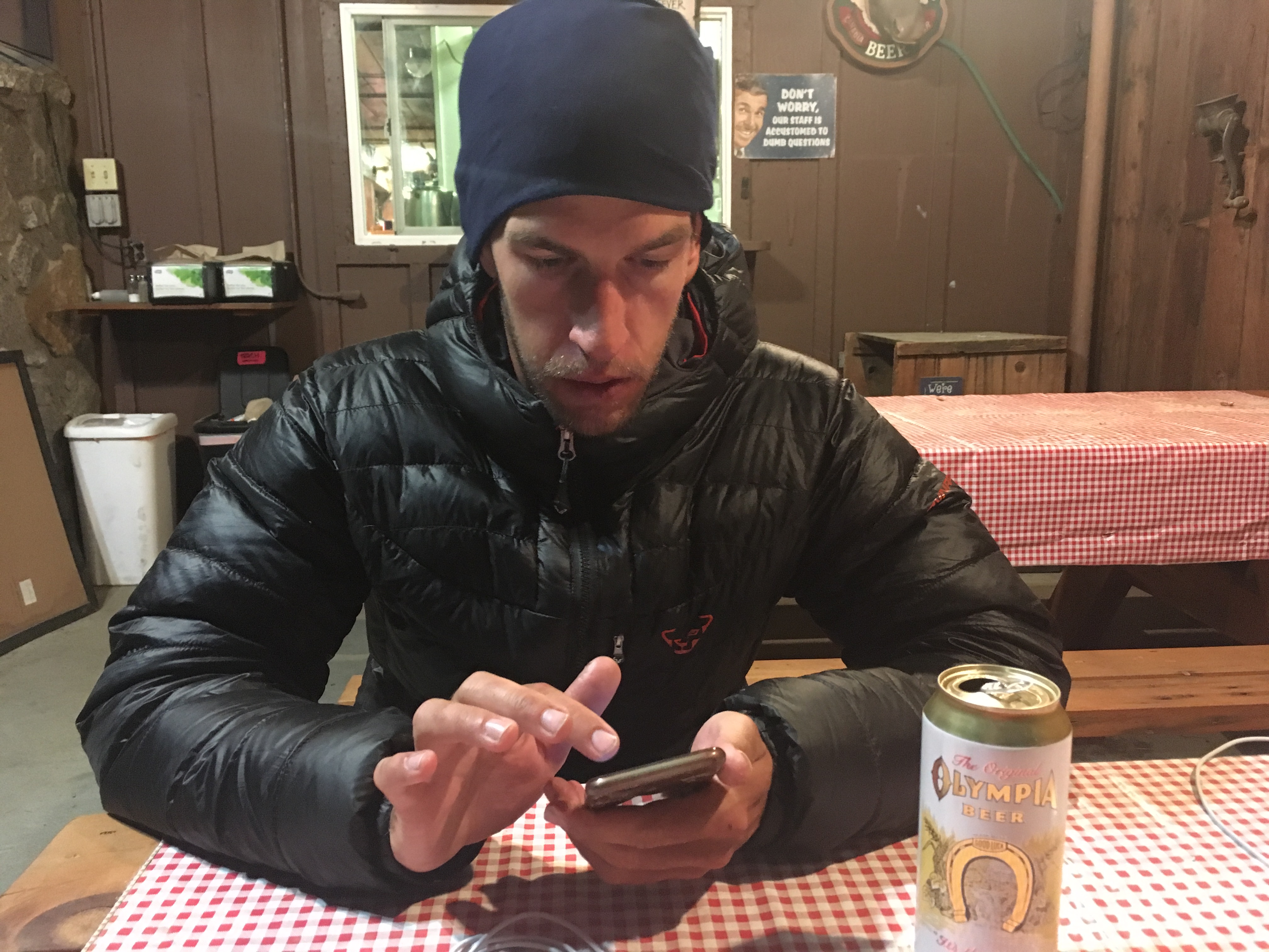 Čekají nás ještě další dvě řeky. Měli velkou sílu, ale už nebyli tak hluboké, takže se s ostražitostí dali poměrně bezpečně přejít. Všichni jsme v šoku z předešlé řeky, takže jsme ostražití až až. Od Irů jsme se dozvěděli, že nemusíme spěchat na lodičku, ale můžeme to vzít přes Bear Ridge, což bude jen o míli delší trasa a pak dvě míle po silnici. To se nám zdá jako skvělý nápad, protože si nejsme jistí, jestli to stihneme. Po cestě je odbočka na Bear Creek, která je o 11km delší. Málem jsme po té cestě omylem šli. No to bychom si dali. Naštěstí jsme se dobře podívali a šli jsme dál až jsme narazili na Bear Ridge. Odtud je to jen 8km a jsme tam. To bylo ale nejdelších 8km jaké si umím představit. Nohy už byly unavené, chytali mě křeče do stehen i lýzek a chodidla taky. Jen představa odměny nás oba donesla až na začátek Bear Ridge, odkud to mělo být jen dvě míle do VVR. Opodál nasedal do auta nějaký rybář. Martin neváhal ani vteřinu a zastavil pána, který ani nevěděl kde VVR je a poprosil ho jestli by nás tam nehodil. Díky bohu za to, že lidé jsou v těchto končinách světa tak úžasní a milí. Myslím, že jinak bychom tam dole postavili stan a do VVR šli až ráno. Ušli jsme 27,5km a k tomu samozřejmě převýšení. Sundali jsme batohy a kačeřím krokem došli do boudy, která se tvářila jako restaurace. K naší velké radosti měli výborné pivo a k mírnému zklamání měli jen dvě jídla z kterých jsme si vybrali kuře, které bylo krvavě syrové a rýže byla převařená a neosolená. Žádná omáčka ani zelenina. No tak to bychom měli. PCT je taková cesta životem. Očekávání se málokdy střetávají s realitou a zklamání jsou stejně častá jako nečekaná překvapení. Třeba to, že jsme tu potkali Ivanku, s kterou jsme si postěžovali na přechod dnešní řeky. Později dorazili Irové, kteří omylem šli cestou Bear Creek a ušli tak asi 40km. Těm už nevadilo ani to syrové kuře.